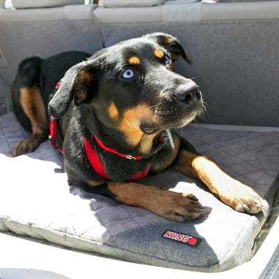 De KONG Ligmat Auto Lichtgrijs 120X90X12 cm is een handig hondenbed voor op reis met wasbare hoes. Zo heeft jouw hond altijd zijn eigen plekje, waar je ook naartoe gaat! De mat is gemaakt van hoge kwaliteit schuimrubber met een duurzame, verwijderbare hoes. De hoes kan gewassen worden en is bovendien voorzien van een anti-slip onderkant, zodat de hond op kan staan en kan gaan liggen zonder dat de mat verplaatst. De mat is uitgevoerd in stoer grijs met het KONG-logo.